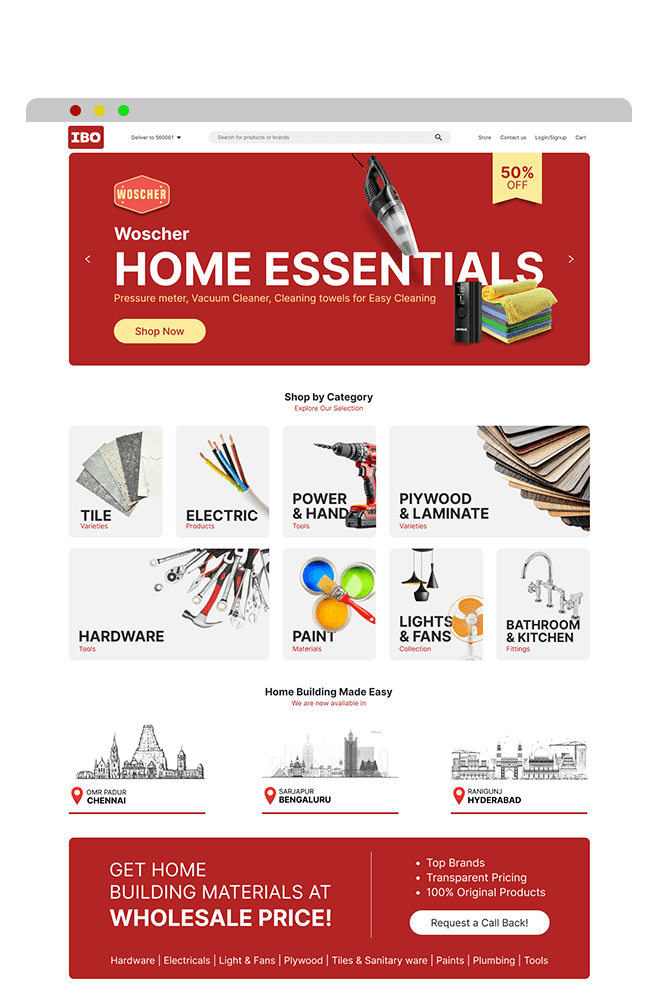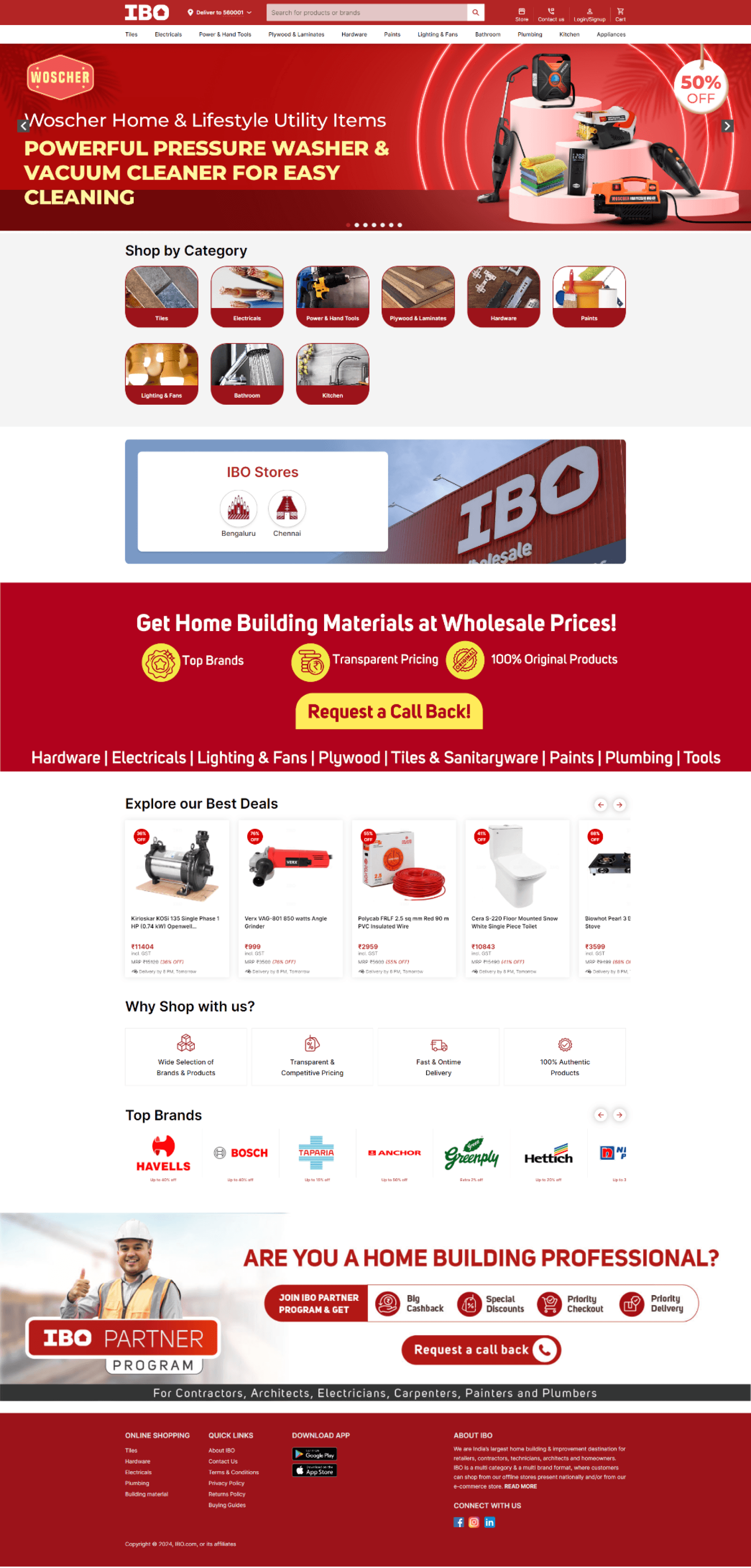 IBO- Shop of Home Building and Home Improvement Products. Buying home-building requirements has become easier than ever before with the largest collection of branded products across all home building categories at IBO.