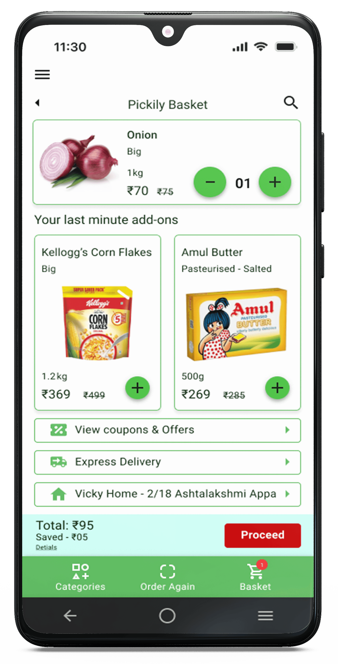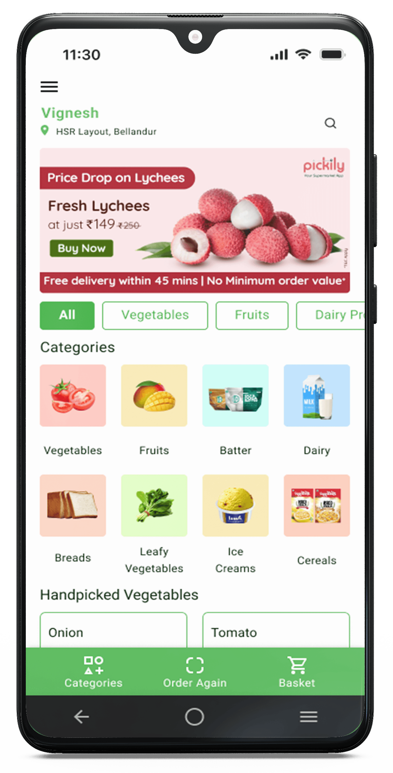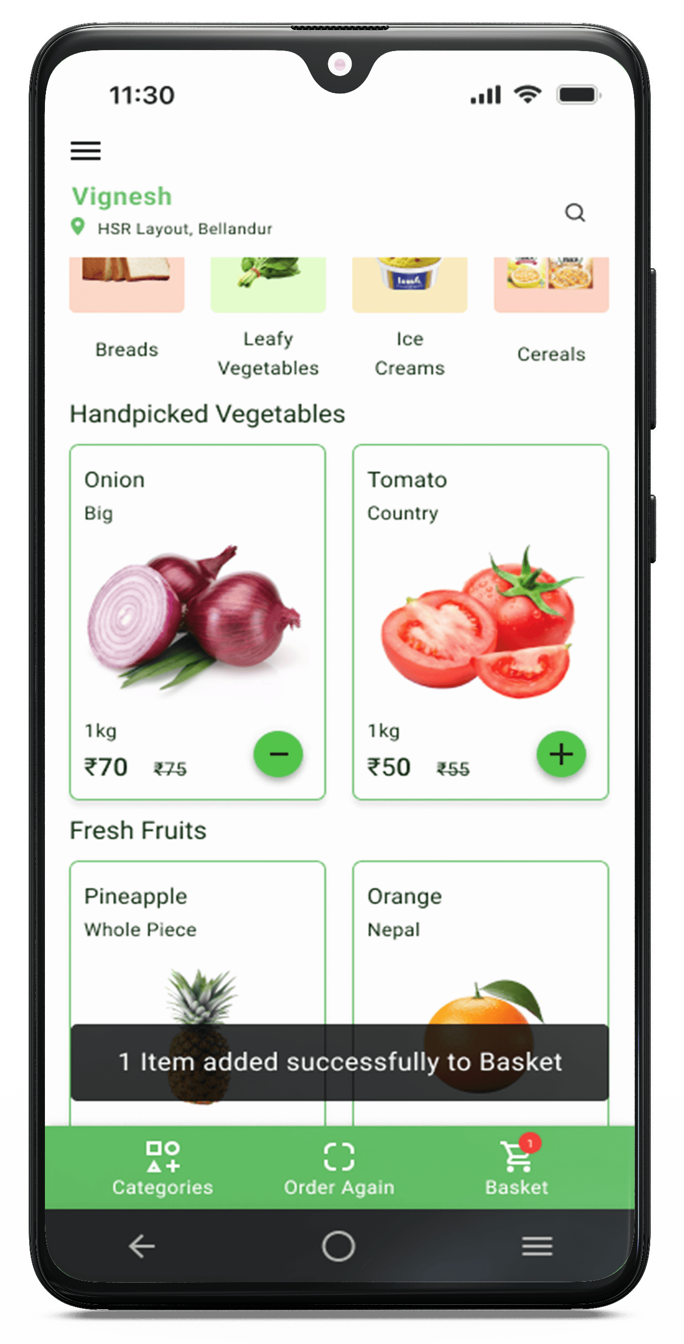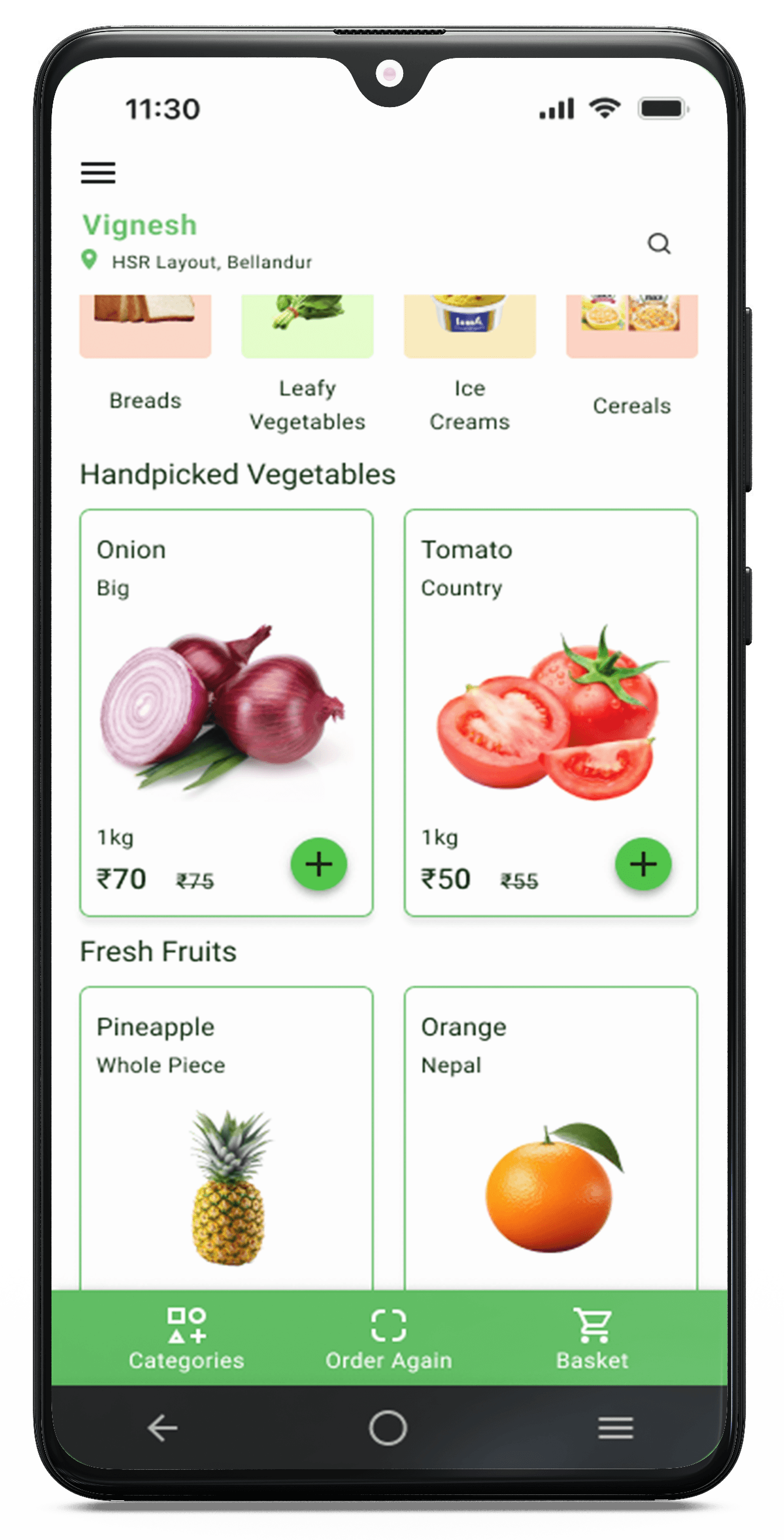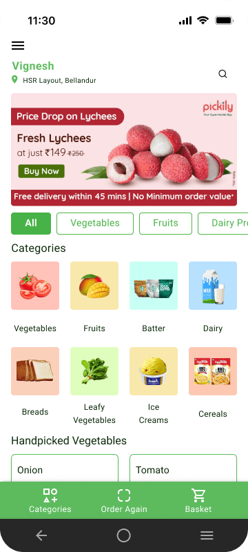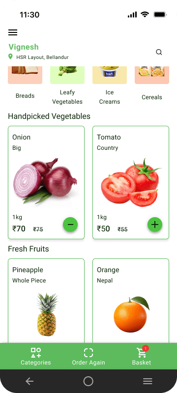 It is an online supermarket app for fresh & hand picked fruits, vegetables and daily essentials delivered to your doorstep.